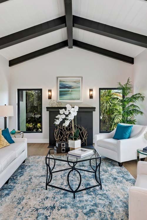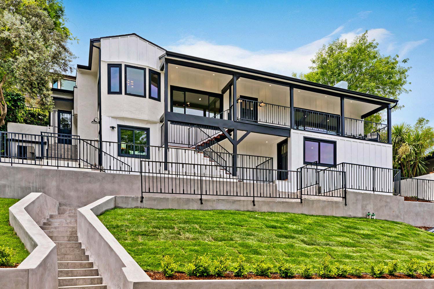Lake Hollywood Gorgeous California Farmhouse style. Exquisitely remodeled with custom finishes new plumbing and electric. Chevron pattern hardwood flooring, wainscoted walls lead to a 10 ft ceiling living room w/wide plank hard wood floor & fireplace. Gourmet kitchen has custom cabinets, Quartz counters, Viking App., wine rack & breakfast room. Dining Room has wainscoted walls and coved ceiling. Master has custom built in cabinetry w/ French doors leading to a hot tub spa on Trex deck. Master ensuite has sliding barn door, double vanity, seamless glass shower and soaker tub. Two other bedrooms have walk in closet/custom built in cabinetry. Middle bathroom has a stunning marble chevron walled shower. Backyard has large courtyard. New landscaping, 2 car finished garage. Main house is a approx. 2,294 sq. ft. per assessor, and the attached guest suite approx. 647 sq. ft. w/2 beds and 2 baths, living room, kitchen & separate entry. Beautiful mountain views, w/partial view of Hollywood sign.